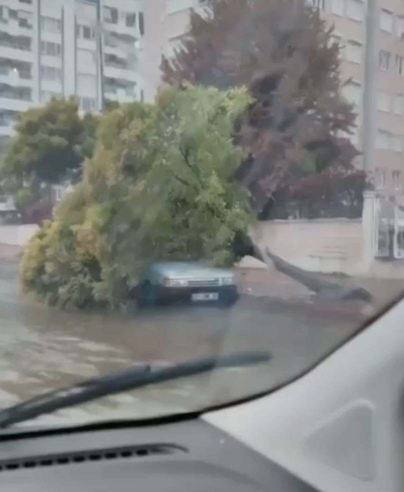 Antalya’da etkili olan sağanak ve fırtına, ağaçları yola ve araçların üzerine devirdi, bir hastanenin dış kaplaması yerinden söküp fırlattı. Yine fırtına nedeniyle falezleri döven dev dalgalardan limana sığınan tekneler ise adeta beşik gibi sallandı.