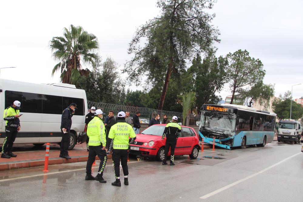 Edinilen bilgiye göre kaza, saat 08.20 sırasında Siteler Mahallesi 1366 Sokak üzerinde meydana geldi. Büyükşehir Belediyesine ait 07 AU 0452 özel halk otobüs sürücüsü Cengiz Akıcı, pazar yeri karşısındaki duraktan yolcu aldıktan sonra yoluna devam etti. Ancak otobüs henüz belirlenemeyen bir nedenle sürçüşünün kontrolünden çıktı ve önündeki 9 araca çarptıktan sonra kaldırımdaki elektrik direğini devirdikten sonra durabildi. Kazayı görenler durumu 112 Acil Çağrı Merkezi’ne bildirdi. Kaza yeri savaş alanını andırırken, Muratpaşa İlçe Emniyet Müdürü Zafer Kunduz'un koruması Gökhan Öztürk'ünde aralarında bulunduğu 5 kişi yaralandı. Yaralılara ilk müdahaleyi bölgeden geçen vatandaşlar yaptı. Yaralılar ambulanslarla hastanelere kaldırıldı. Kazada otobüs ve bir minibüsün ön bölümlerinin hurdaya döndüğü görüldü. Yaralıların sağlık durumunun iyi olduğu belirtildi. Polis ekipleri bir süre sokağı araç giriş ve çıkışına kapattı. Araçların olay yerinden çekilmesinin ardından yol trafiğe açıldı. Kazayla ilgili inceleme başlatıldı.