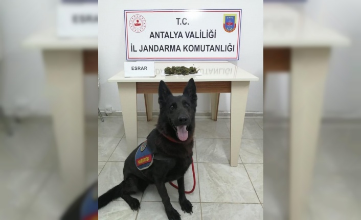 Gazipaşa Cumhuriyet Başsavcılığı koordinesinde Gazipaşa ilçesi Güney Yol Kontrol Noktasında 6 Ağustos tarihinde M.N. isimli seyahat firmasına ait otobüste İl Jandarma Komutanlığı köpeği ile birlikte icra edilen önleme aramasında H.Y. isimli şahsa ait çanta içerisinde yaklaşık 54 gram esrar maddesi ele geçirildi. Olayla ilgili adli işlemler başlatıldı.