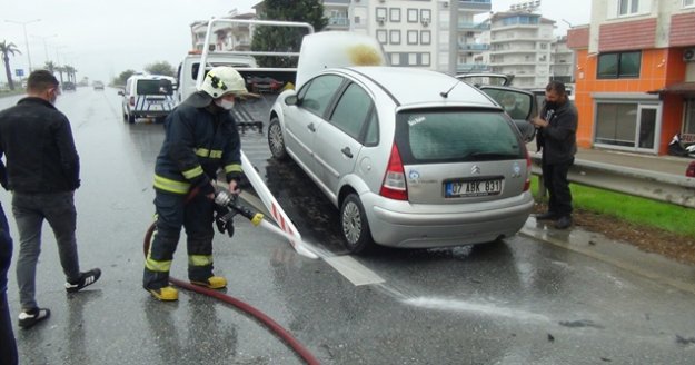 Antalya-Alanya D-400 karayolu üzerinde Manavgat Örnek Mahallesi çevreyolunda seyir halindeki Veli Akkaya’nın kullandığı 07 ABK 831 plakalı otomobil bir anda yanmaya başladı. Çevreyoluna çıktığı anda motorunun alt kısmından alevler çıkmaya başlayan otomobile vatandaşlar müdahale etti. Olay yerine gelen Antalya Büyükşehir Belediyesi İtfaiye ekibi de araçta soğutma çalışması yaptı.
