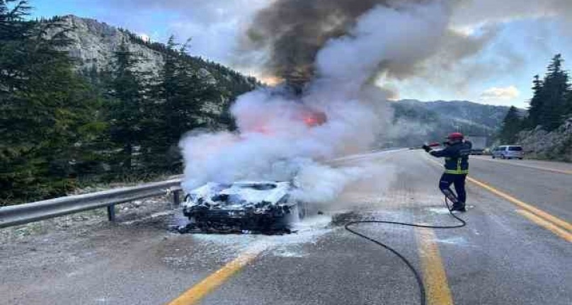 Olay, dün saat 18.00 sıralarında Akseki - Seydişehir karayolu Alacabel mevkiinde meydana geldi. Edinilen bilgiye göre, Mehmet Sağlam idaresindeki 07 K 0070 plakalı hususi otomobil Akseki yönünden Seydişehir yönüne seyir halindeyken yanmaya başladı. Motor bölümünden alevlerin yükselmesi üzerine sürücü M.S araçtan inerek durumu 112 acil durum merkezine haber verdi. Antalya Büyükşehir Belediyesi Akseki birimine bağlı itfaiye ekipleri kısa sürede olay yerine gelerek yanan araca müdahale etti.