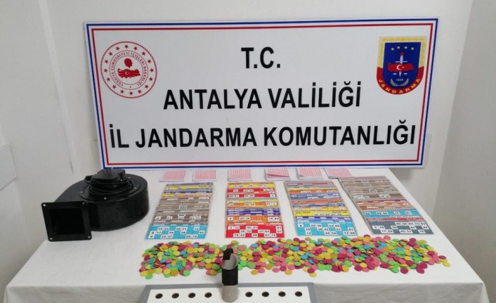 Manavgat ilçesi Side Mahallesinde kumar oynatıldığı duyumu alınması üzerine Manavgat Cumhuriyet Başsavcılığı koordinesinde Side Jandarma Karakol Komutanlığı ve Manavgat İlçe Jandarma JASAT ekipleri çalışma başlattı. Gece 03.15’te M.O.Ç. isimli şahsın depo olarak kiraladığı kapalı olan kafenin üst katında yapılan aramada 40 kişi kumar oynarken suçüstü yakalandı. Mekanda yapılan aramada 1 adet tombala toplarını karıştırmak için kullanılan havalandırma motoru, 1adet topların karıştığı kutu, 90 adet tombala topu, 170 adet tombala oyun kartı, 400 adet tombala pulu 1 adet kamera cihazı, 3 adet yazboz tespit edildi. Depo sahibi M.O.Ç. hakkında Kumar Oynanması için Yer ve İmkan Sağlamak suçundan adli işlem yapılarak, tombala oynadığı tespit edilen 4 kişiye toplam 72 bin 760 TL idari para cezası uygulandı.