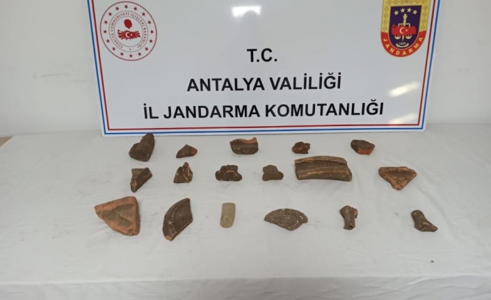 Antalya’nın Aksu ilçesinde 1.derece sit alanında izinsiz kazı yapan 2 kişi gözaltına alınırken, tarihi eser niteliği taşıyan objeler ele geçirildi.