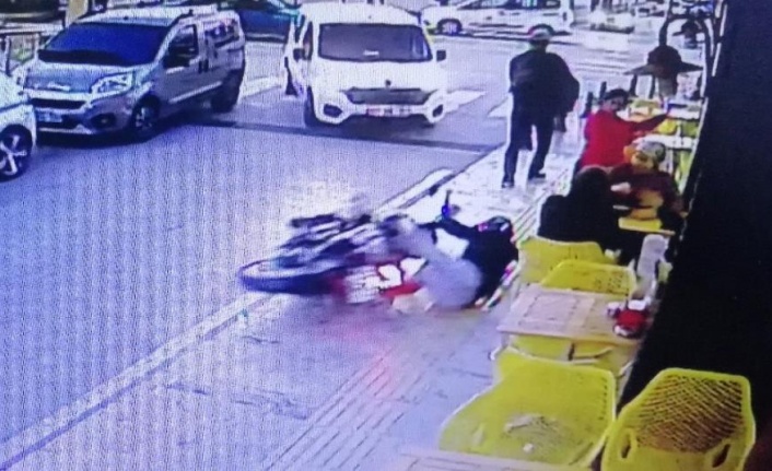 Öte yandan, kaza anı ve yaşananlar iş yerinin güvenlik kamerasına yansıdı.