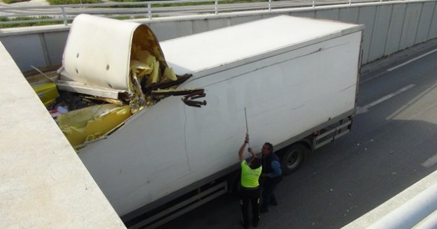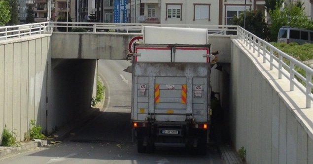 Kaza, Manavgat ilçesinde meydana geldi. Edinilen bilgiye göre, Çağlayan Mahallesinde Şelale istikametinden şehir merkezine seyir halindeki Yusuf Dündar’ın kullandığı 34 GH 5592 plakalı zincir alışveriş merkezine ait gıda yüklü kapalı kasa kargo kamyonu Zeynel Şenol Köprü girişinde bulunan 3 metre yüksekliğindeki hemzemin geçitte sıkıştı.