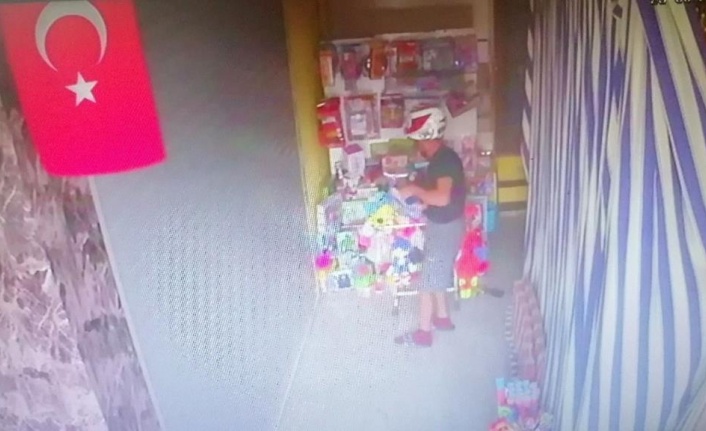 Antalya'nın Manavgat ilçesinde bir iş yerinden çok sayıda oyuncak çalan kasklı hırsız güvenlik kamerasına yakalandı.