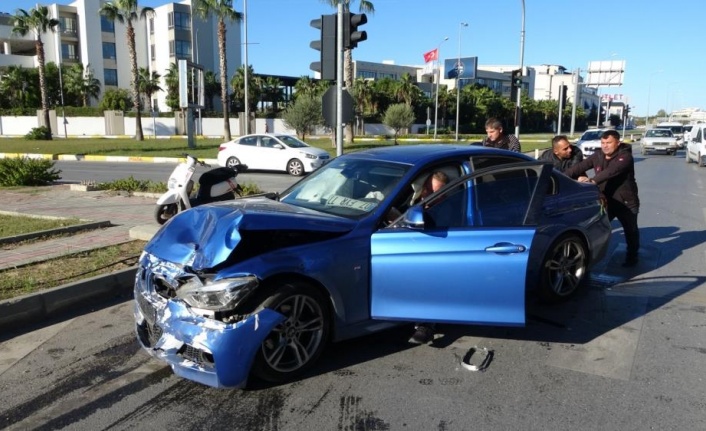 Manavgat'ta kırmızı ışık ihlali sonucu meydana gelen trafik kazasında araçlar hurdaya dönerken 1 kişi yaralandı.