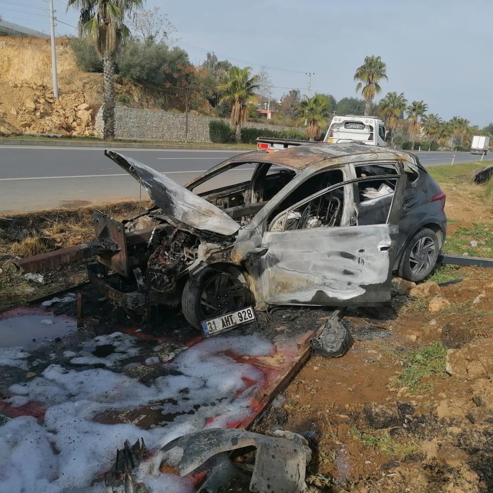 Kaza sonrası alev alan otomobil küle döndü