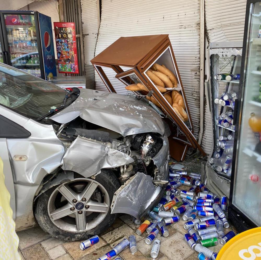 Kaza yapan otomobil markete daldı