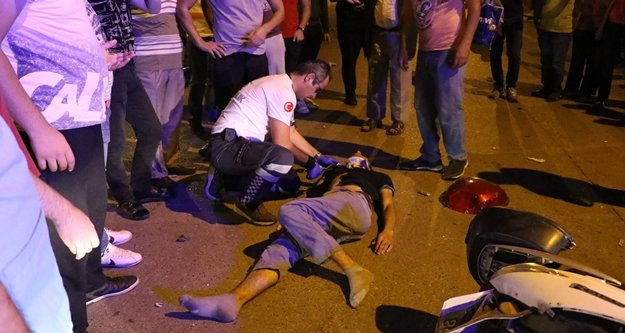Antalya'nın Kepez ilçesinde motosikletli kurye, kavşakta ticari araca çarptı. Motosiklet sürücüsü yerde yatarken, olay yerine gelen patronuna vatandaşlar kask fırçası attı.