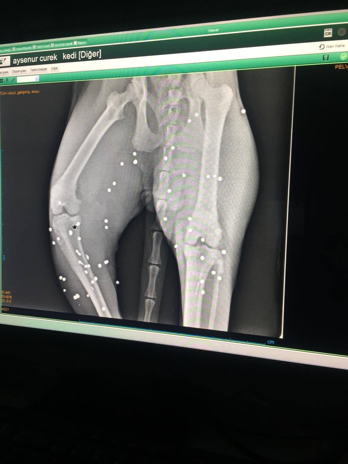 Veteriner Hekim Atila Sargın, Şenay Yılmaz’ın kendisini aramasından sonra olaydan haberdar olduğunu belirterek, "Gelip baktığımda kedinin durumunun kötü olduğunu gördüm. Hemen aldım kliniğe götürdüm. Röntgeni çekince gördüm ki kedinin arka tarafında çok sayıda saçma var. Yani kedinin arka tarafında tüfekle ateş edilmiş” dedi.