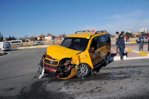 Antalya'da kontrolsüz kavşakta ticari taksi ile servis otobüsünün karıştığı kazada 3 kişi yaralandı