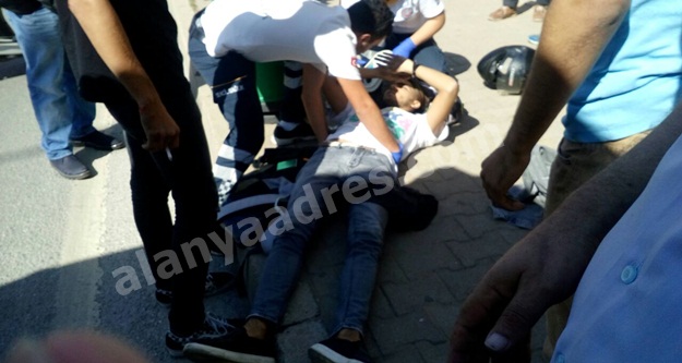 Alanya'da kontrolünü kaybeden motosiklet sürücüsü önünde duran halk otobüsünün altına daldı.