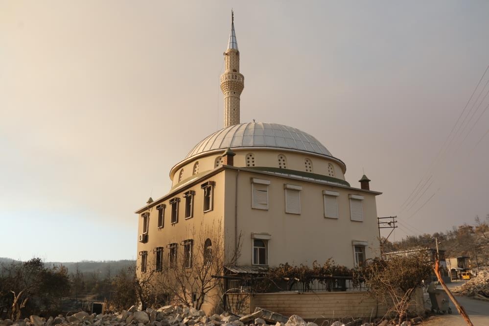 Öte yandan yangında mahallenin hemen ortasında bulunan Kalemler Camii’nin sadece dış duvarlarının alevlerden etkilendiği görüldü. Caminin çevresinde bulunan evler küle dönerken, caminin sadece dış duvarında duman izlerinin kalması şaşkınlık oluşturdu. Yangında caminin pencerelerinde bulunan panjurların da ısıdan dolayı eridiği görüldü. Vatandaşlar tarafından şimdilik kullanılmayan camii, yangıdan zarar gören vatandaşlara getirilen eşyalara ev sahipliği yapıyor. Çeşitli illerden getirilen yiyecek ve diğer malzemeler cami içerisinde toplanmaya başlandı.