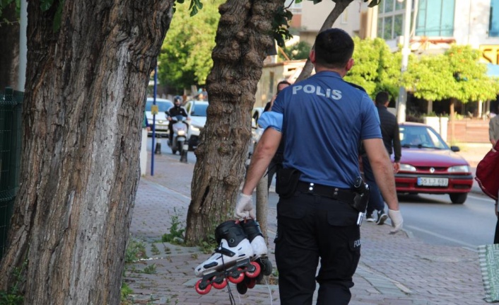 üzere polis merkezine götürüldü. Ölen çocuğun ayağından çıkartılan patenleri ise bir polis memuru tarafından olay yerinden uzaklaştırıldı.