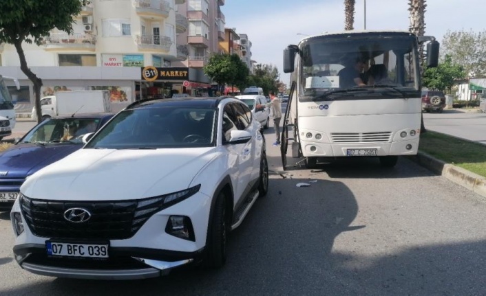 Antalya'nın Manavgat ilçesinde kapısı açık seyreden servis otobüsü, kırmızı ışıkta bekleyen otomobile çarptı. Otobüs kapısı koparken otomobilde hasar oluştu.