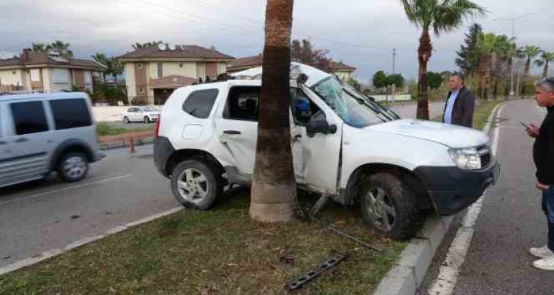 Otomobil palmiyeye çarptı, sürücü yaralandı