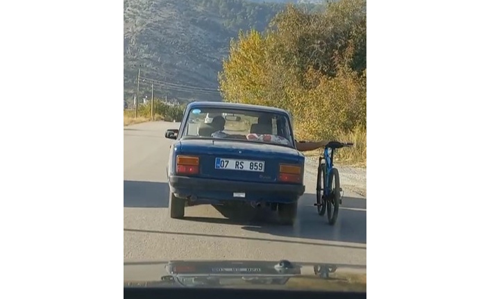 Şaşkınlık veren olay, Döşemealtı ilçesi yolunda meydana geldi. Otomobilde yolcu olarak bulunan vatandaş, aracın penceresinden eliyle bisikletin direksiyonunu tutup, otomobil ile birlikte yola devam etti. Kazaya davetiye çıkartan yolculuk, aynı istikamette seyir halinde giden aracın içerisinde bulunanlar tarafından kayıt altına alındı.