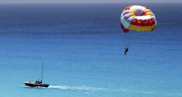 Sürat teknesinin arkasına bağlanarak deniz üzerinde paraşütle havalanmayı sağlayan parasailing halatının kopması sonucu plaja düşen çocuk yaralandı.