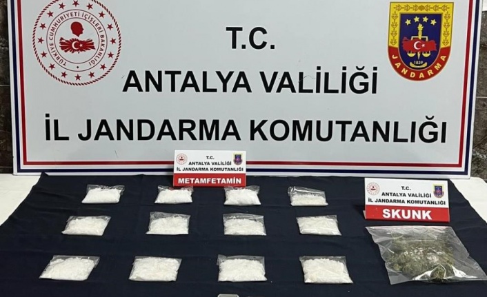 Antalya’da piyasaya uyuşturucu süreceği öğrenilen 1 şüpheli, jandarmanın operasyonuyla yakalandı. Gözaltına alınan şüphelinin üzerinde ve aracında yapılan aramada 1 kilo 170 gram metamfetamin ve yarım kilo skunk ele geçirildi.