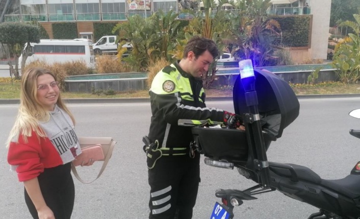 Antalya’nın Manavgat ilçesinde kask takmadığı için polis tarafından durdurulan kadın motosiklet sürücüsü, “Motosikleti yeni aldım, kask almaya param yetmedi” dedi. Yediği cezaya rağmen neşesinden bir şey kaybetmediği gözlenen sürücü, “Şimdi cezayı gerçekten yazdınız mı? Buna inanamıyorum” diyerek motosikletine bindi ve gülerek uzaklaştı.