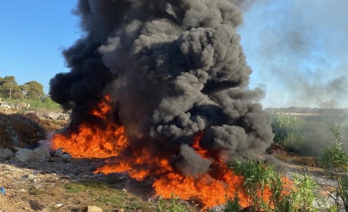 Antalya'nın Aksu ilçesinde boş arazide sanayi atıklarının tutuşması ile başlayan yangında çıkan dumanlar gökyüzünü siyaha bürüdü. Yaklaşık 500 metrekare alanda etkili olan yangın, ekipler tarafından söndürüldü.