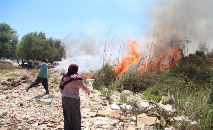 Muratpaşa ilçesi Ermenek Mahallesi'ndeki sazlık ve tepelik alandaki iki farklı bölgede sabah saatlerinde alevler yükselmeye başladı. Tepelik alandaki yangın rüzgarın etkisiyle kısa sürede etrafa yayıldı. Muratpaşa Belediyesinin şantiyesine yaklaşan alevleri söndürmek için çalışanlar canla başla mücadele etti. Palmiye ağaçları ve gübre ve atık maddelerden yükselen alevler kısa sürede üst bölgedeki makilik alana sıçradı. Muratpaşa Belediyesi ekipleri alevlerin şantiyeye ve ekipmanlara gelmemesi için arazözlerle duman altında söndürme çalışması yaptı. Yamaçlık alanda arı kovanları ve ağaçları olan vatandaşlarda yangını söndürmek için çalıştı. Lüks villalar yakınındaki yangında güvenlik görevlileri ise yangın söndürme tüplerini kullandı. Çok sayıda ekibin müdahalesiyle bu bölgedeki alevler söndürüldü soğutma çalışmasına geçildi.