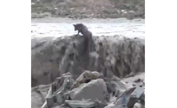 Sel sularında mahsur kalan tilkinin 11 dakikalık yaşam mücadelesi