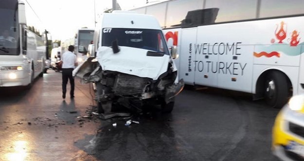 Servis araçlarının çarpıştığı kaza ucuz atlatıldı