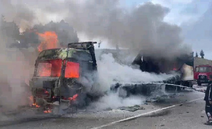Antalya'nın Korkuteli ilçesinden seyir halinde alev alan tır kullanılamaz hale geldi. Olayda can kaybı ya da yaralanan olmadı.