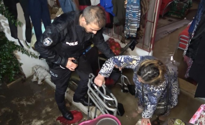 Şiddetli yağmur sebebiyle su basan evde mahsur kalan engelli kadını ve yaşlı anneyi polis kurtardı
