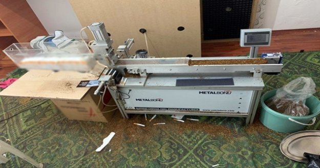 İ.D.’nin iş yerinde yapılan aramada girişte bulunan kasa olarak kullanılan çekmecenin en alt gözünde 1 adet hassas terazi ele geçirildi. Ayrıca şahsın evinde yapılan aramada ise, bir adet sigara doldurma (tütün sarma) makinesi, bir adet kompresör, 2 kilo 600 gram kıyılmış tütün, 2 bin adet makaron ele geçirildi.