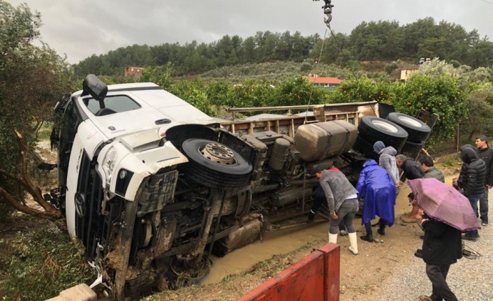 Öte yandan, kamyonun devrildiği yerdeki bahçenin tel çitleri ile portakal ve zeytin ağaçlarının zarar gördüğü bildirildi.