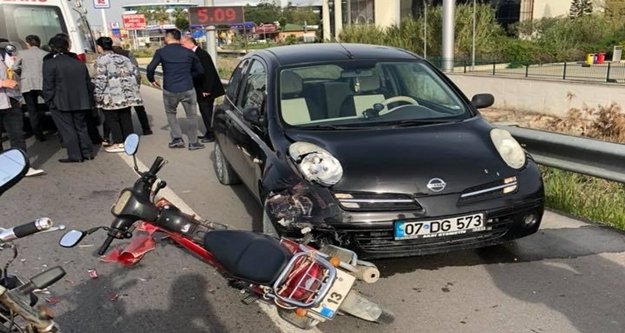 Bir akaryakıt istasyonundan benzin aldıktan sonra iş merkezine ters istikametten gitmek isteyen sürücünün kullandığı otomobile çarpan motosiklet sürücüsü yaralandı.