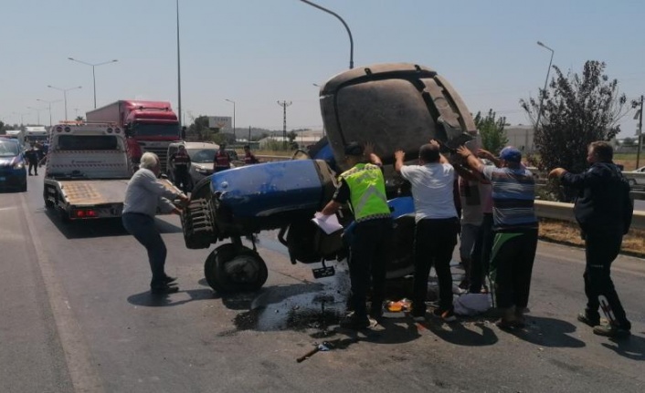 Kaza, Manavgat-Antalya D-400 Karayolu Hocalar Kavşağı yakınında meydana geldi. Kazım T.'nin kullandığı 07 LCZ 17 plakalı traktör ile Ferdi P. idaresindeki 01 CCH 44 plakalı otomobilin çarpıştı ve traktör yolun ortasında devrildi. Kaza sonucu traktörün altına ayağı sıkışan Kazım T., vatandaşlar tarafından bulunduğu yerden çıkarılırken; traktöre çarptıktan sonra bariyerlere de çarpan otomobilde yolcu olarak bulunan Ayşe P., Y.P. ve 3 aylık N.P. yaralandı. Yaralılar, sağlık ekiplerinin olay yerindeki müdahalesinin ardından ambulansla hastaneye kaldırıldı. Traktörün yola devrilmesi sonucu yol bir süre kapanırken, yolda kilometrelerce araç kuyruğu oluştu. Karayolları ekipleri, yola dökülen yağın üzerini dubalarla kum taşıyarak kapattı.