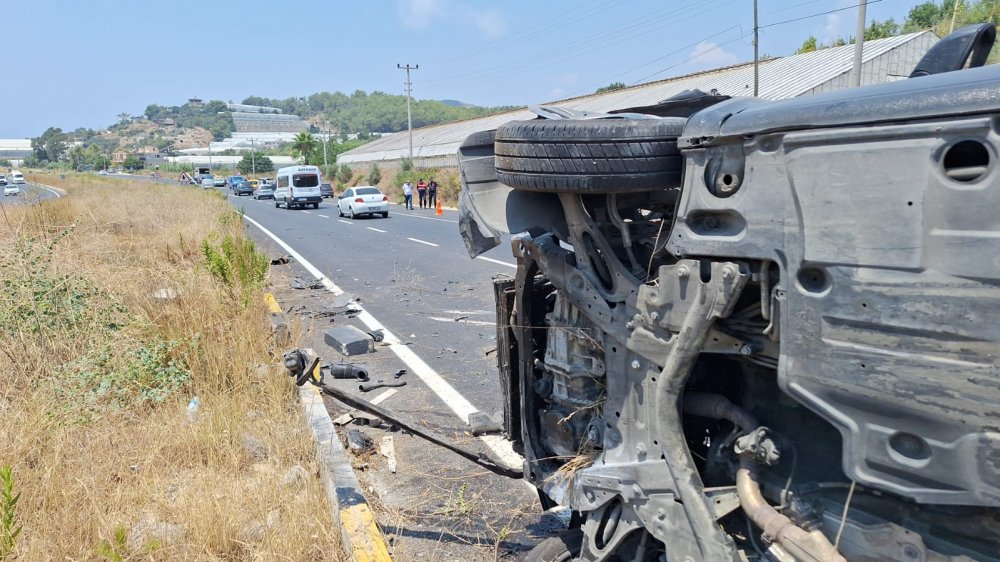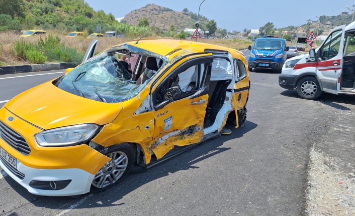 Alanya’dan havalimanına yolcu götüren transfer firmasının şoförü, refüjü aşarak karşı yönde seyir halinde olan taksiye çarptı. Takla atan taksi sürücüsü ve yanındaki yolcu yaralandı.