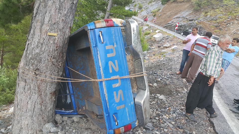 Kuşyuvası'nda seyir halinde olan aracı uçuruma yuvarlanmaktan çam ağacı kurtardı.