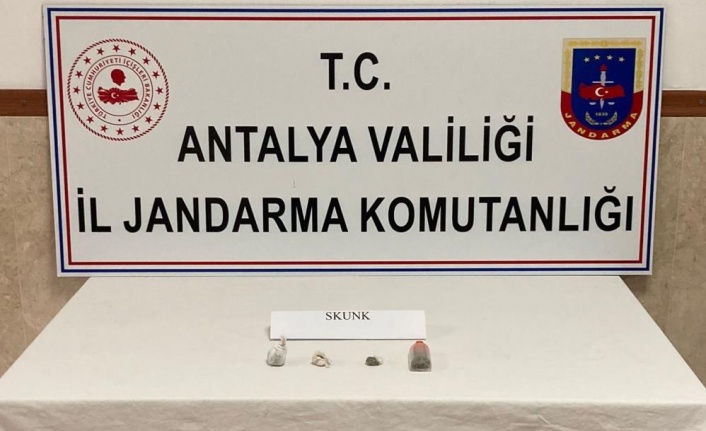 Manavgat İlçe Jandarma Komutanlığı ekipleri tarafından Manavgat ilçesinde uyuşturucu madde bulundurduğu tespit edilen O.Ç., Y.Ç., Ö.K. ve H.G. isimli şüpheliler düzenlenen operasyon ile yakalandı. Şüphelilerin yapılan üst aramasında üzerlerinden 19 gram Skunk uyuşturucu maddesi ele geçirildi.