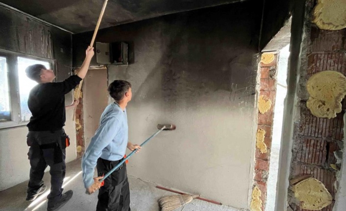 Yanan evi yabancı öğrencilerle tamir ettiler