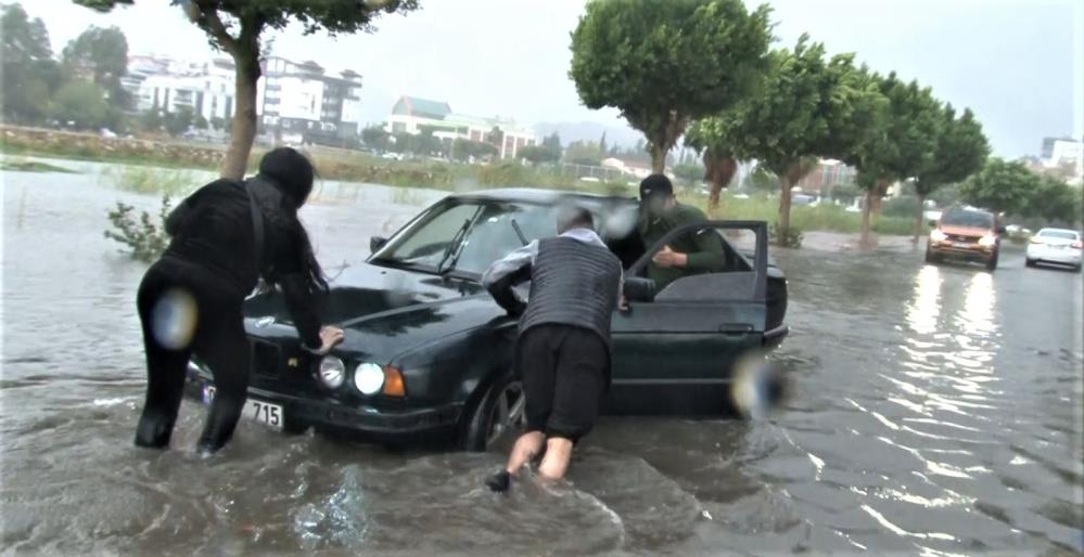 Kente genelinde şiddetli yağmur sonrasında adeta yollar ve sokaklar dere yatağına döndü. Konyaaltı İlçesi Gürsu Mahallesi 318 sokak üzerinde 3 araç mahsur kaldı. Araç sürücüleri ise çaresizce araçlarının içerisinde kurtarılmayı bekledi. Bir aile ise araçlarını kendi elleri ittirerek kurtardı. Bazı sürücüler ise kaldırım üzerinden gitmek isteyince dere yatağına aracının tekerlerini düşürdü.
