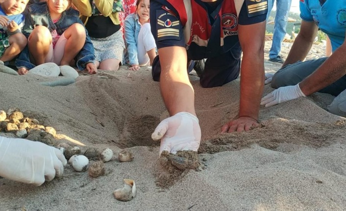 Antalya’nın Kemer ilçesinde jandarma ekipleri, “Caretta Caretta Deniz Kaplumbağaları İlk Yuva Açma Etkinliği” ile yuvadan çıkamayan caretta caretta yavrularını denizle buluşturdu.