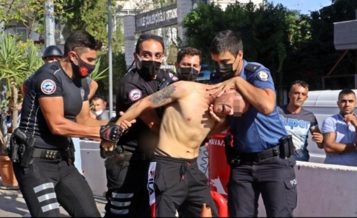 Bu sırada etrafı polis ekipleri ile çevrilen Murat P.’nin bir anlık dalgınlığından faydalanan Muratpaşa Devriye Ekipler Amiri Komiser Sait Tarı, şahsın üzerine atlayıp elindeki bıçağı aldı. Ardından diğer ekipler de güçlük çıkartan şahsı etkisiz hale getirdi.