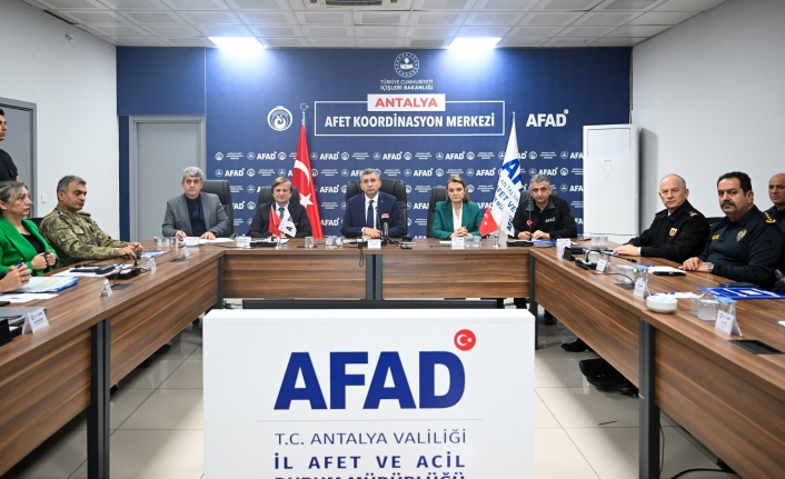 Meteoroloji Genel Müdürlüğü’nün turuncu kodlu aşırı yağış uyarısının ardından, Antalya Valiliği himayesinde Vali Hulusi Şahin’in başkanlığında AFAD İl Müdürlüğü Afet Koordinasyon Merkezinde İl Afet ve Acil Durum Koordinasyon Kurulu toplantısı gerçekleştirildi.