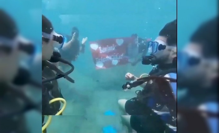 Antalya’da yaşayan bir genç, kız arkadaşına evlenme teklifi yapmak için ilginç bir yöntem seçti. Genç daha önce ayarladığı dalgıç ekibi ile birlikte kız arkadaşını da alarak Antalya’nın Konyaaltı ilçesi ile Beldibi Mahallesi arasında kalan Sıçan Adası açıklarına giderek dalış gerçekleştirdi. Burada suyun altında “Benimle evlenir misin?” pankartını açan genç, kız arkadaşına evlenme teklifi yaptı. Kız ise romantik teklife ‘evet’ diyerek cevap verdi.