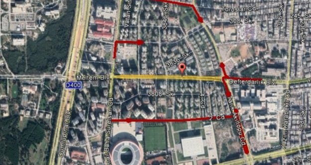 3. Aşama Raylı Sistem Projesi çalışmaları kapsamında Meltem Bulvarının İsmail Baha Sürelsan Caddesi ile Tarık Akıltopu Caddesi arasında kalan bölümün trafiğe kapatılması nedeniyle Meltem Bulvarını kullanarak Eğitim Araştırma Hastanesi istikametine gidecek olan araçlar sırasıyla; Meltem Mahallesi 3802 Sokak, İsmail Baha Sürelsan Caddesi 2. Cadde ve Tarık Akıltopu Caddesi’nde bulunan U dönüşü güzergahını ya da Dumlupınar Bulvarı Meltem Katlı Kavşağı, Toroslar Caddesi ve Tarık Akıltopu Caddesi güzergahını kullanabilecek.