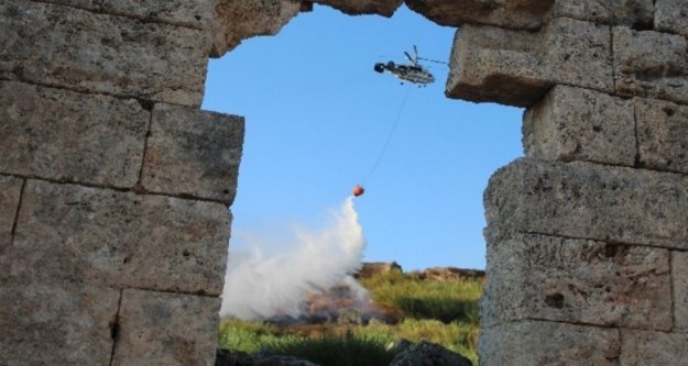 Antalya'nın Aksu ilçesindeki Perge Antik Kenti'ni tehdit eden orman yangını söndürüldü.