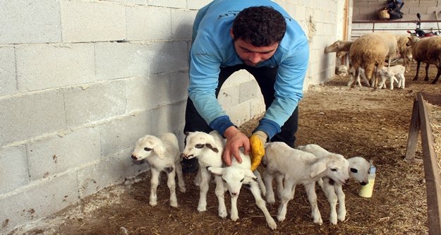 Manavgat’ta koyun ve tavuk çiftliği bulunan Ali Sezgin’e ait Merinos-Sakız kırması yerli ırk Pırıt türü koyun yeni yıla 5 yavru ile girdi. 2016 yılında ikiz, 2017 yılında üçüz olmak üzere 2 yılda 5 yavru doğuran koyun, yeni yılda beşiz doğurdu. 15 yıldır hayvancılık yaptığını ve koyun beslediğini belirten Ali Sezgin, "Hayatımda ilk kez bir koyunun aynı anda 5 yavru doğurduğuna şahit oldum. Koyunum 2 yıl önce ikiz, geçen yıl ise üçüz olmak üzere 2 seferde 5 yavru doğurmuştu. Bu ay koyunların doğum ayı. 200’ün üzerinde koyunumuz var. Şu ana kadar 40 dolayında yavru doğdu. Bu akşam koyunumuz doğuma başladığında ilk yavruyu elimize aldığımızda hemen arkasından ikinci, bir süre sonra da üçüncü yavru geldi. Bu yıl da üçüz doğurduğunu tahmin ederken dördüncü yavru geldi. Hayretler içerisinde dördüncü yavruyu izlerken hayatımda ilk kez beşinci yavruyu da gördük" dedi.