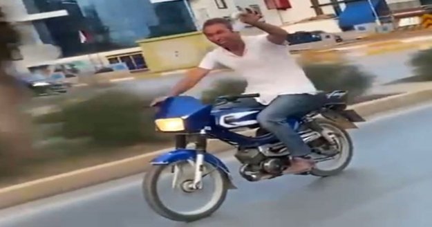 Antalya’nın Kepez ilçesinde geçtiğimiz günlerde motosiklet sürücüsü Abdulrıza I., seyir halindeyken elinde içki dolu bardakla son sürat motosiklet sürmüş, kendisini cep telefonuyla görüntüleyen vatandaşa da 'şerefe' hareketi yapmıştı. Sürücünün hareketi ve tehlikeli yolculuk sosyal medyada yer almıştı. Görüntünün sosyal medyada paylaşılması sonrası sürücü Abdulrıza I.'ya 2 bin 605 TL para cezası kesilmişti. Abdulrıza I., iki hafta önce de kasksız ve maskesiz şekilde elinde bira kutusuyla vatandaşların cep telefonu kamerasına yakalandı. Gülerek gözlerden kaybolan Abdulrıza I. polis tarafından yine yakalandı ve 'Trafik güvenliğini tehlikeye sokmak', 'ehliyetsiz araç kullanmak ve 'kask takmamak' suçlarından toplam 2 bin 605 TL para cezası uygulandı. Bira kutusuyla tek elle motosiklet kullanan Abdulrıza I., kendisini görüntüleyen ve "Dayı poz ver poz" diyenlere "Bıktım valla aaa" diyerek gözlerden kayboldu.