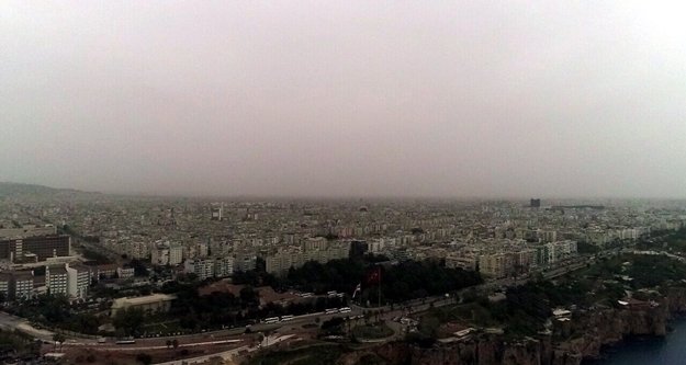 Yaz aylarındaki nemli havayı andıran görüntülerde sabah saatlerinde güneşli hava, toz bulutları sonrası yerini öğlen saatlerinde karanlığa bıraktı. Meteoroloji Bölge Müdürlüğünden dün yapılan açıklamanın ardından Kuzey Afrika’dan havalanan çöl tuzu, dün akşam saatlerinde Antalya’da etkisi gösterdi. Sabah saatlerinde yerini güneşli havaya bırakan Antalya seması, öğle saatlerinde ise toz bulutuyla kaplandı. Bulutların etkisiyle kentin Beydağları ve Toroslar görülmez hale gelirken, yine bulutların Kuzey’den Güney kısmına doğru ilerlediği ve dağ zirvelerinde kümeleştiği gözlendi.