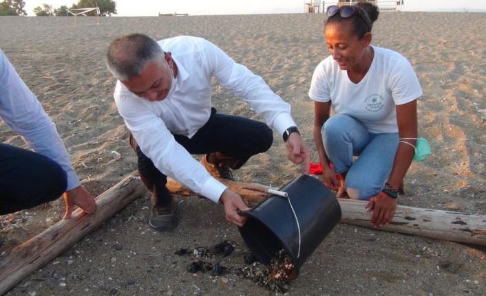 Antalya Valisi Ersin Yazıcı, yumurtalarından yeni çıkan caretta carettaları denizle buluşturdu.